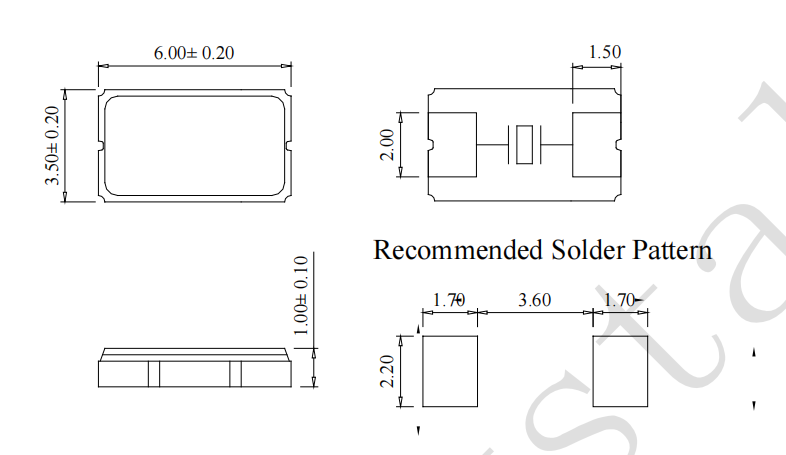 典型的6.0×3.5×1.0毫米玻璃密封SMD晶體