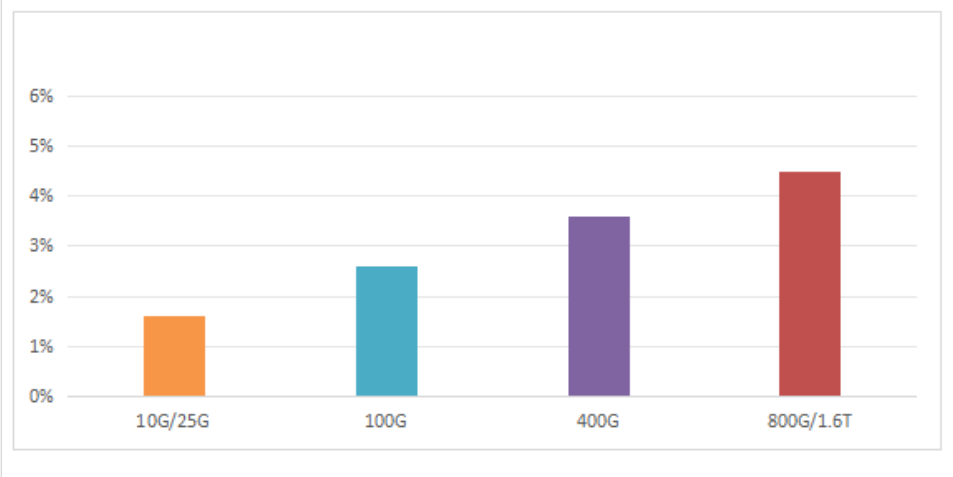 The cost proportion of crystal oscillators for optical modules of different rates