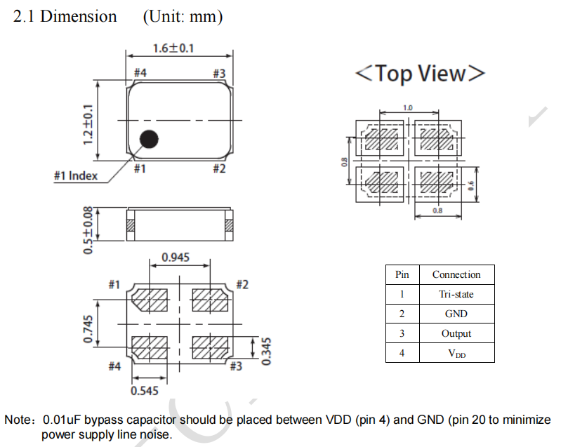 1612尺寸,高0.5mm。超微型和輕型SMD SPXO