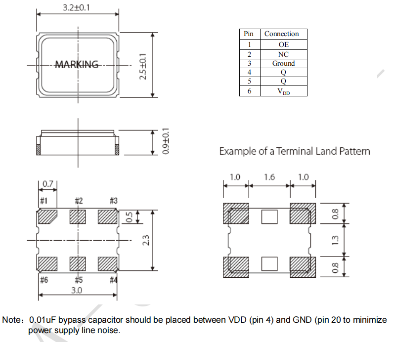 典型的2.5×2.0×0.85 mm陶瓷SMD晶體振蕩器, 2520尺寸6件