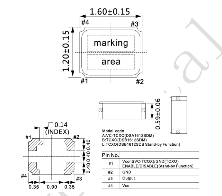 19.200M~52.000M溫度補償的晶體振蕩器(TCXO)PTC1612